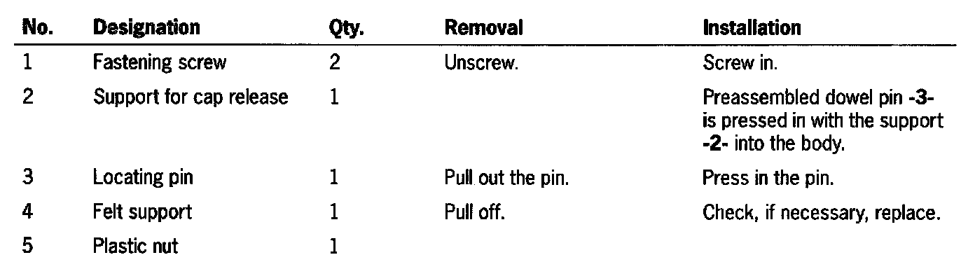 Disassembling and assembling release for front cover - up to model year 2000