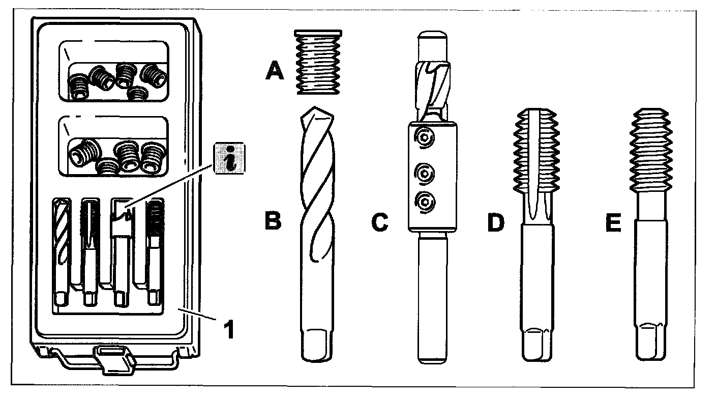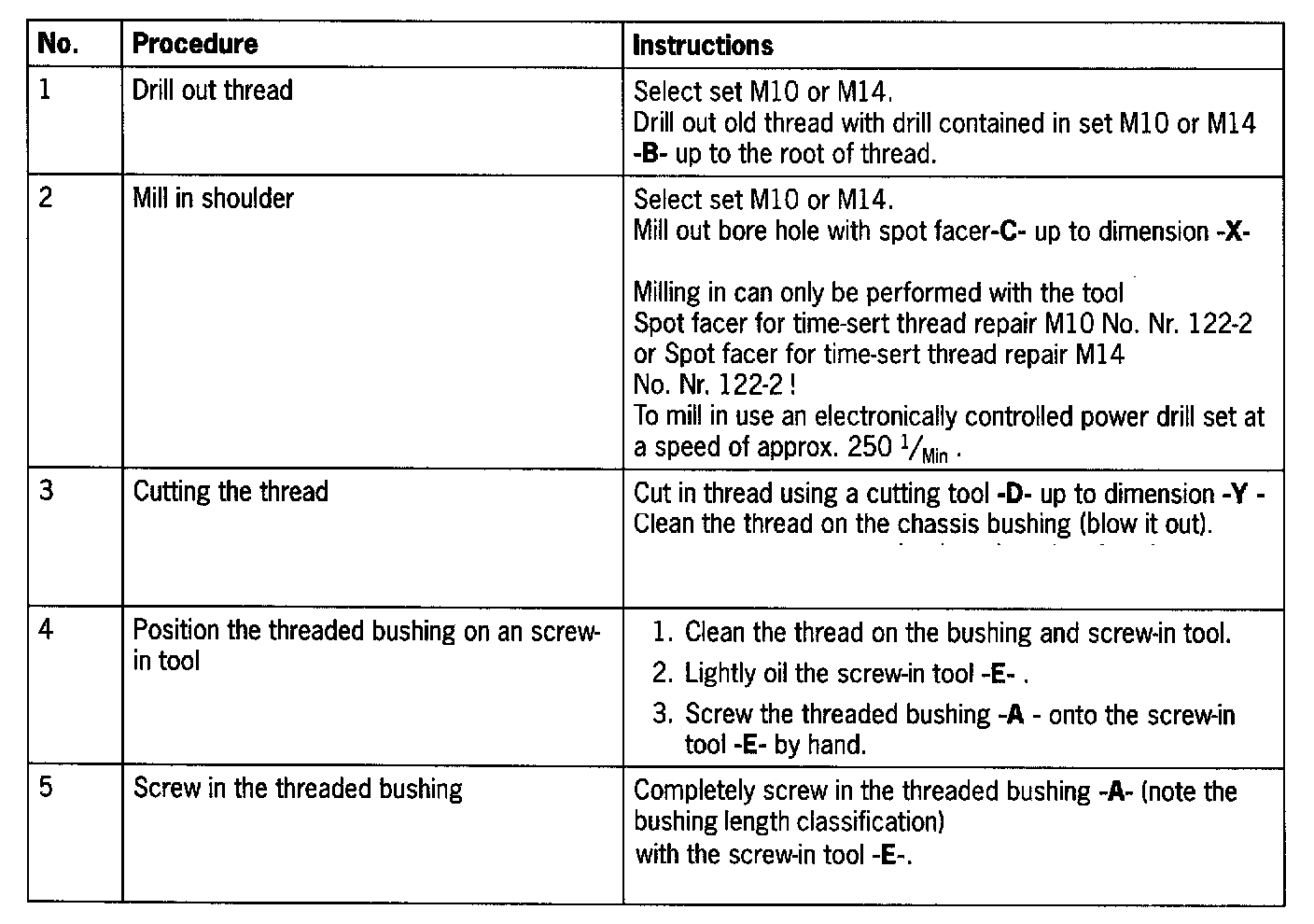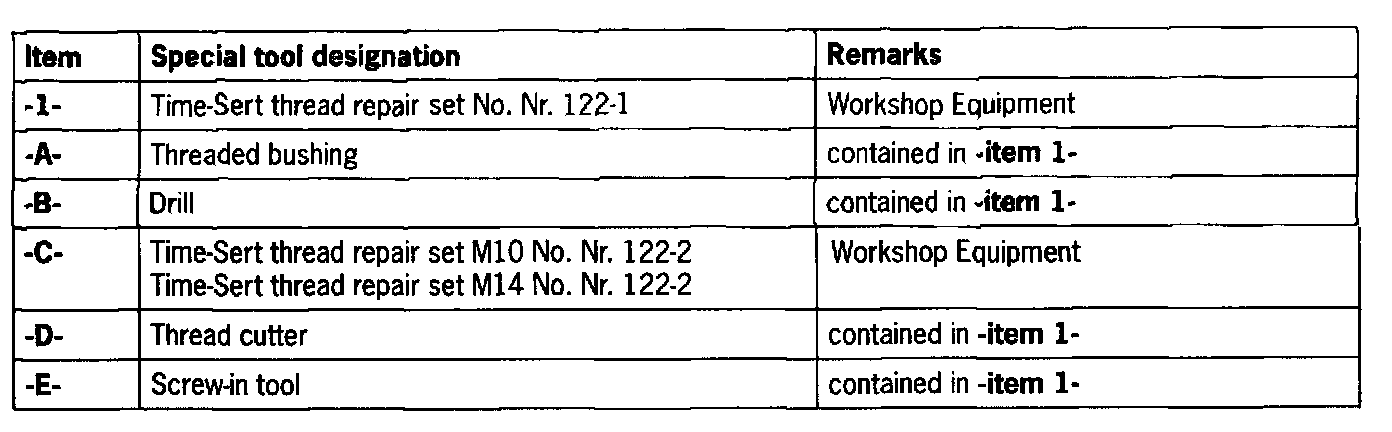 NOTE: To mill in the respective shoulder, the tool with the designation Spot facer for time-sort thread repair M10 and M14 No. Nr. 122-2 must be used. The tool provided from the complete set must not be used in this case.