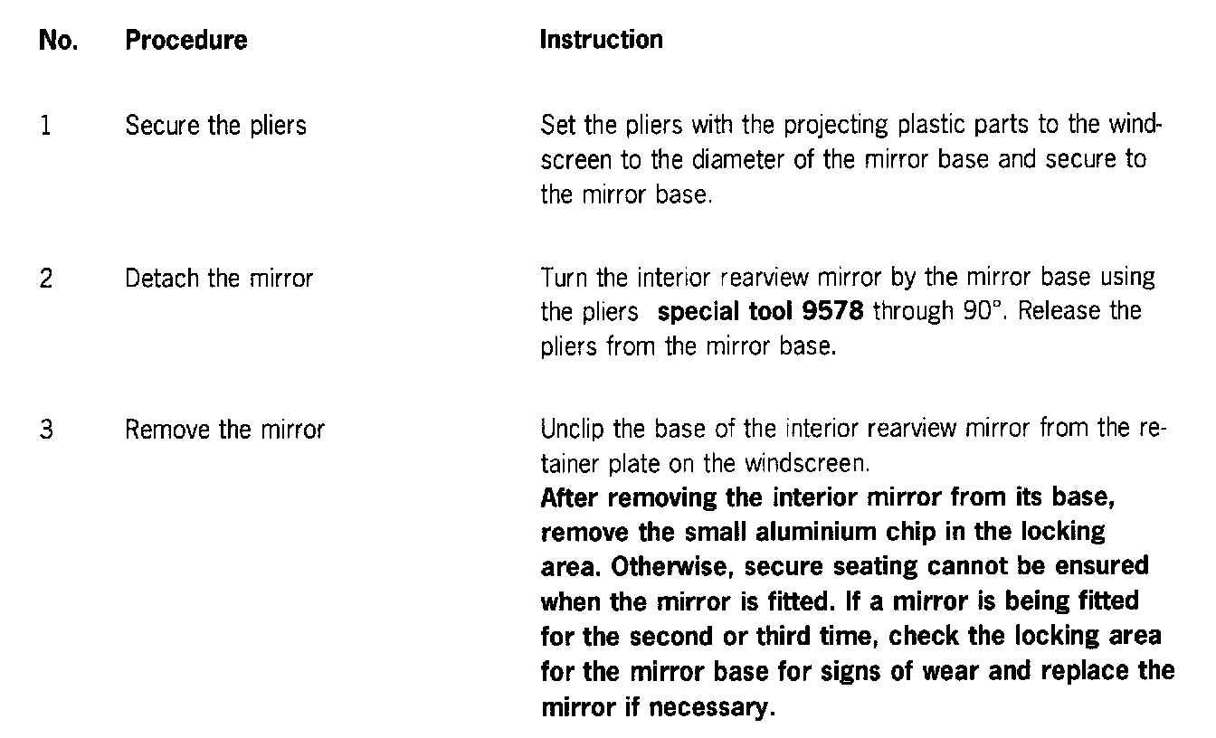 Inside Rearview Mirror, Removing/Installing
