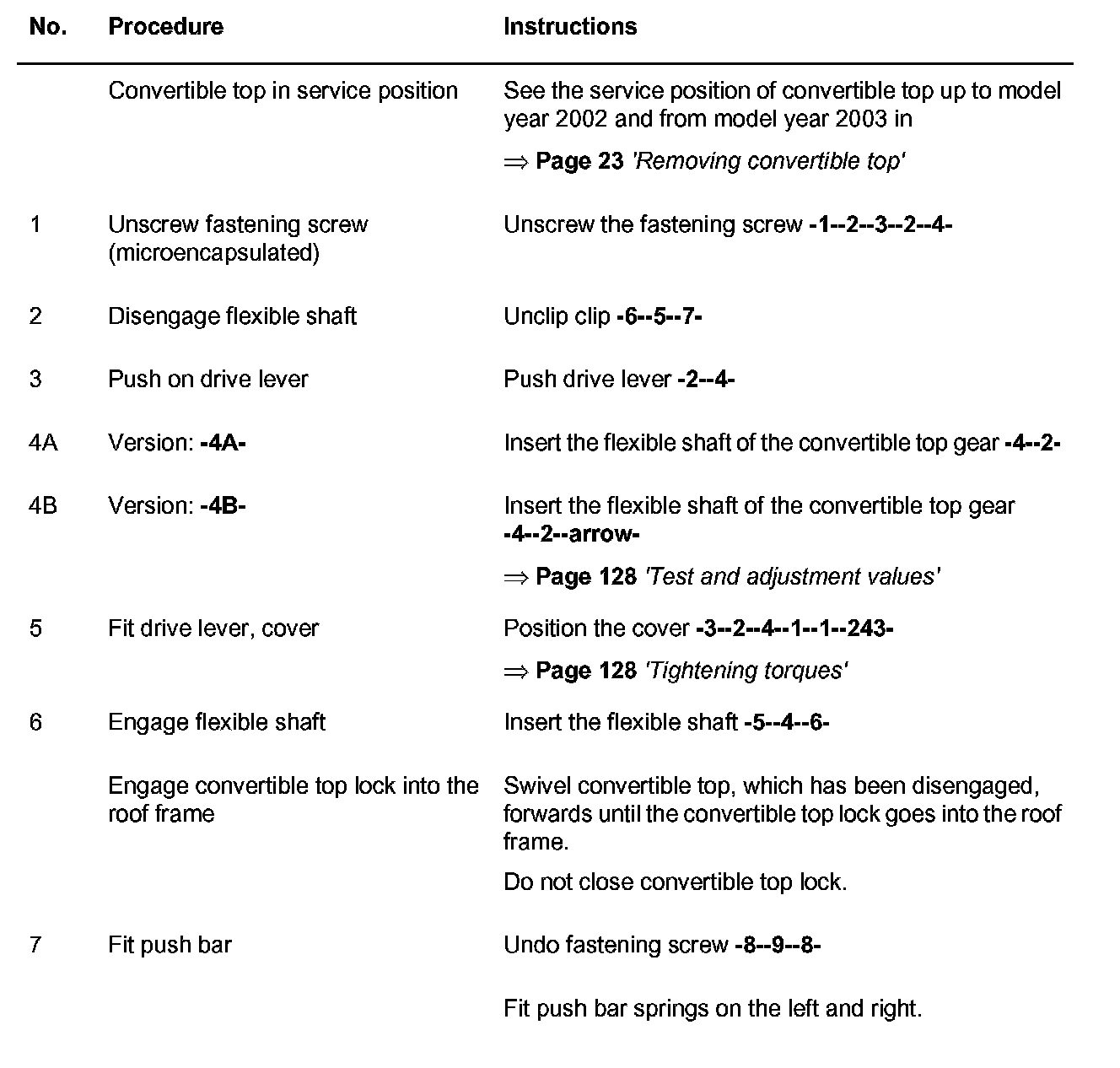 - The following boundary conditions must be observed for adjusting the convertible top gear!