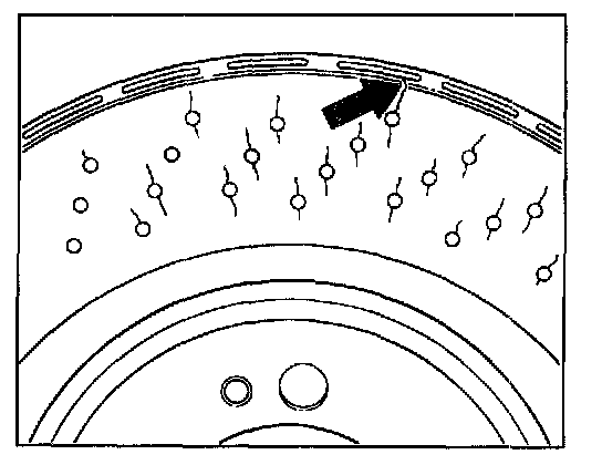 Arrows - Zone where most wear occurs in brake disc friction surface