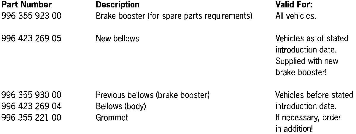 The following measures are necessary before the installation of a new brake booster (996 355 923 00) in vehicles before the stated introduction date: