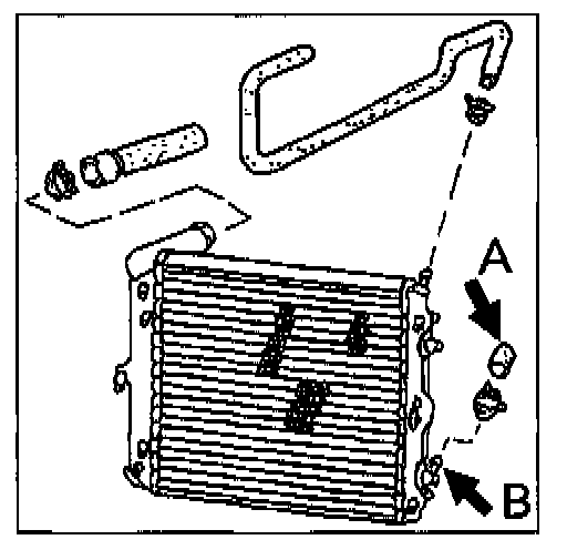 Radiators are now manufactured with only one lower fitting. In the past, this fitting would be capped off depending on which side of the car the radiator was installed on (item B, figure 1). If replacement of a radiator becomes necessary, you must order a radiator that is side specific.