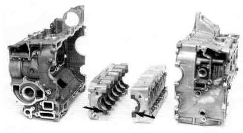 To reduce the wear along the cylinder sleeves to a minimum, a production method was chosen whereby a highly porous sleeve (25% silicon and 75% air) is cast directly into the crankcase.