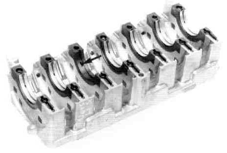This construction means that changes in the bearing clearance resulting from thermal fluctuations are reduced by a considerable degree which, in turn, reduces mechanical noise. An additional benefit is that, when the engine is warm, the oil flow at the main bearings is not significantly increased by the constant bearing clearance (virtually identical thermal expansion coefficients between steel/crankcase and nodular cast iron/bearing shells).