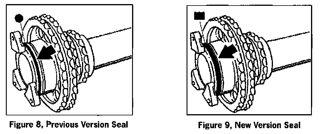 The new style seal, which includes a modified bearing flange, is to be used for repairs on earlier engines. The old style seal is no longer available.