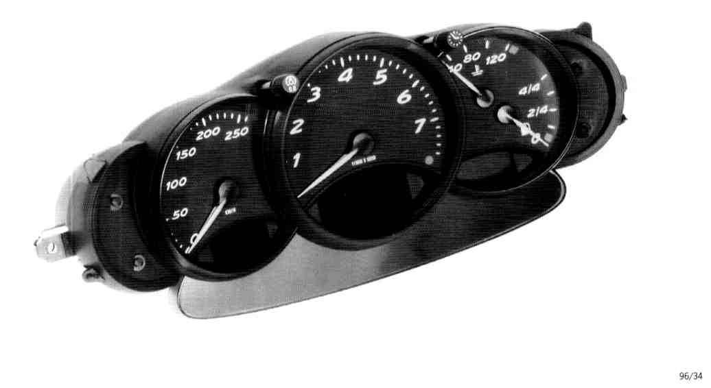 The Boxster's instruments are a new design and combined to form a unit comprising three separate round instrument displays.