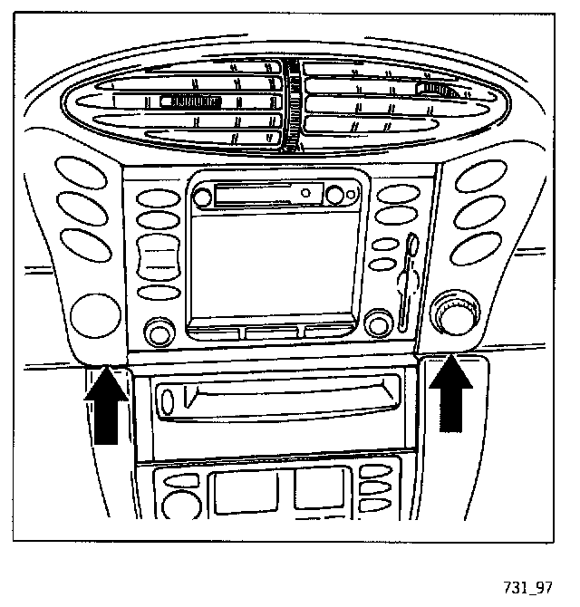 2. Detach and remove the central vent (4 Torx screws 5.0 x 22) at the center vent. Carefully pull out the display and operator control unit and disconnect the electrical plug connections.