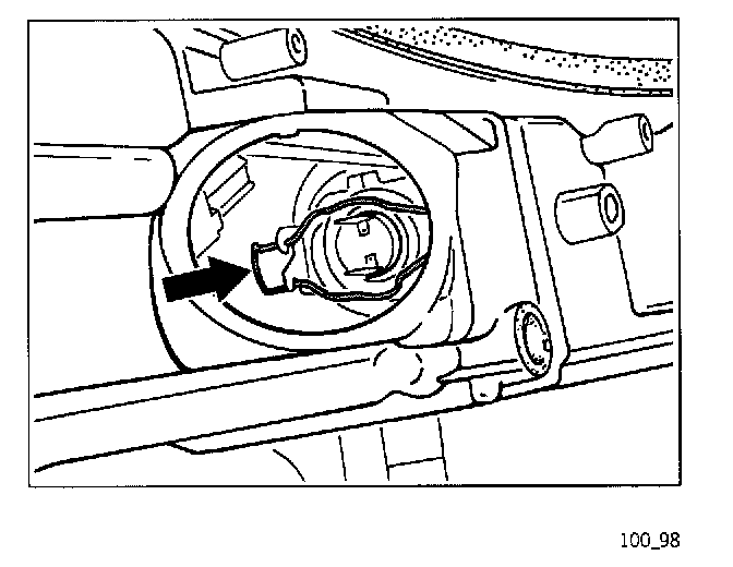 4. Press down retaining bracket (arrow) and swivel downwards. Remove defective bulb.