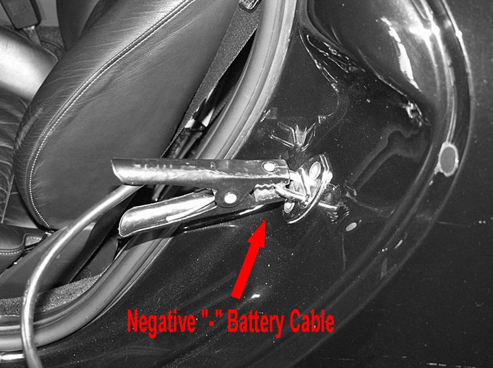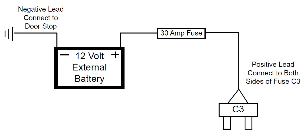 8. Using an external battery or battery pack booster, connect the negative lead "-" to the door stop.