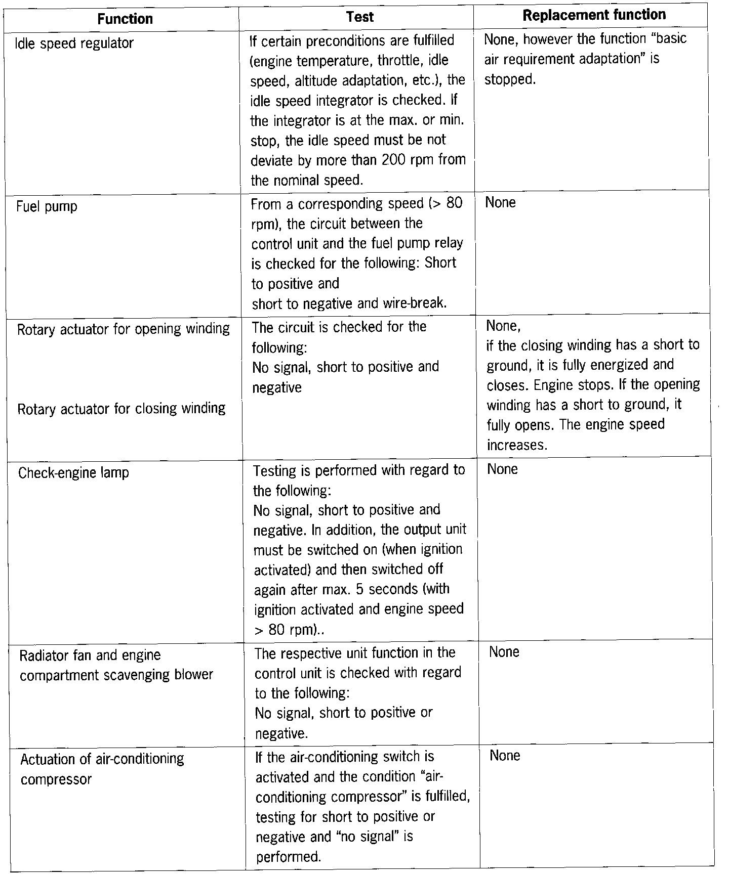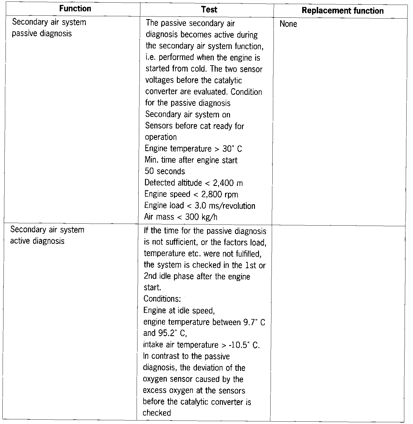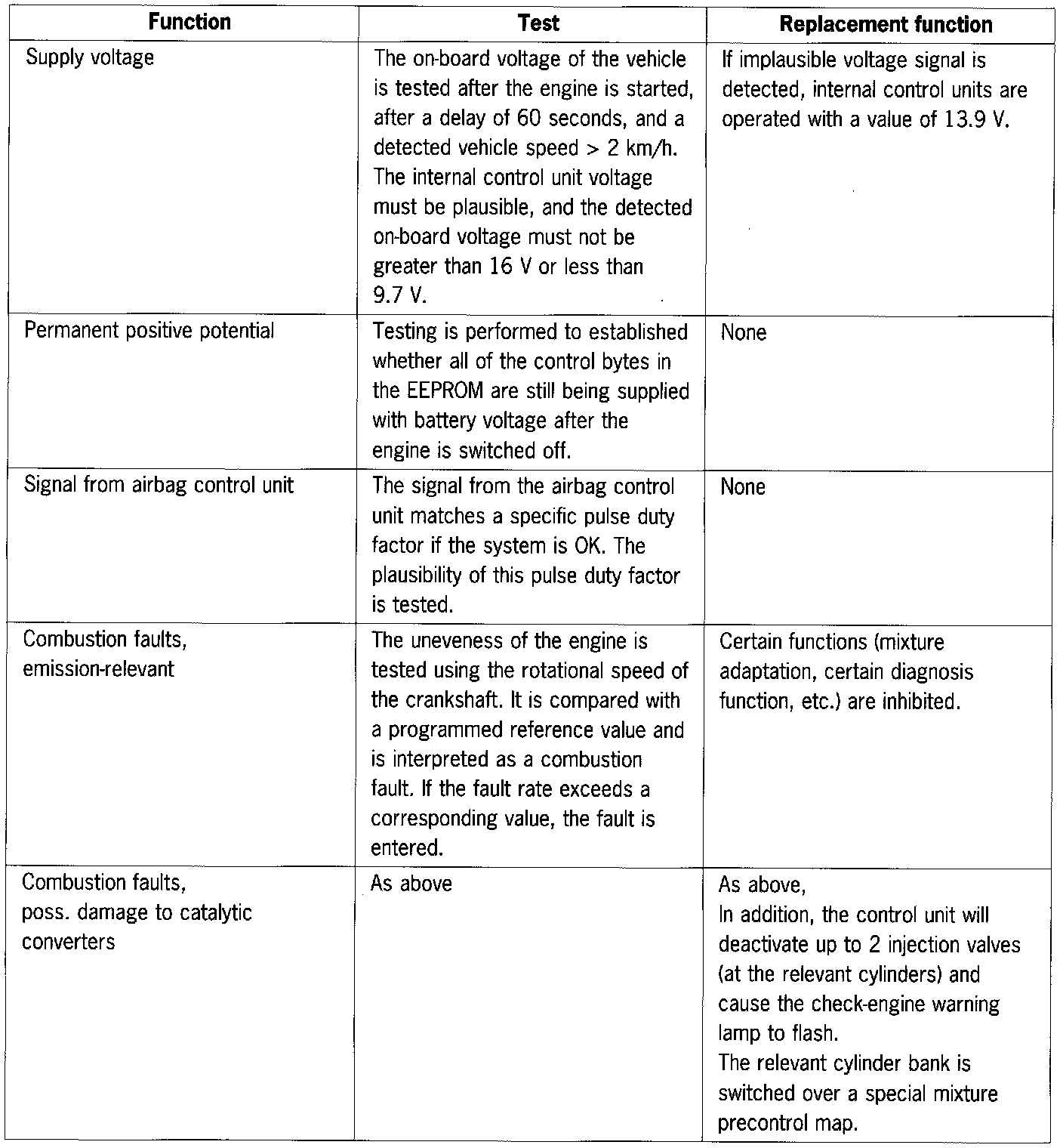 Therefore, for the DME control unit for USA models, apart from the diagnosis functions already provided for FRG and ROW vehicles, all emission-related faults are indicated by the check-engine lamp (only combustion faults endangering the catalytic converters are indicated in the cave ROW and FRG variants) and the extra components are also monitored. In addition, the catalytic conversion and VarioCam adjustment of the camshaft for 4 - 6 must also be monitored.