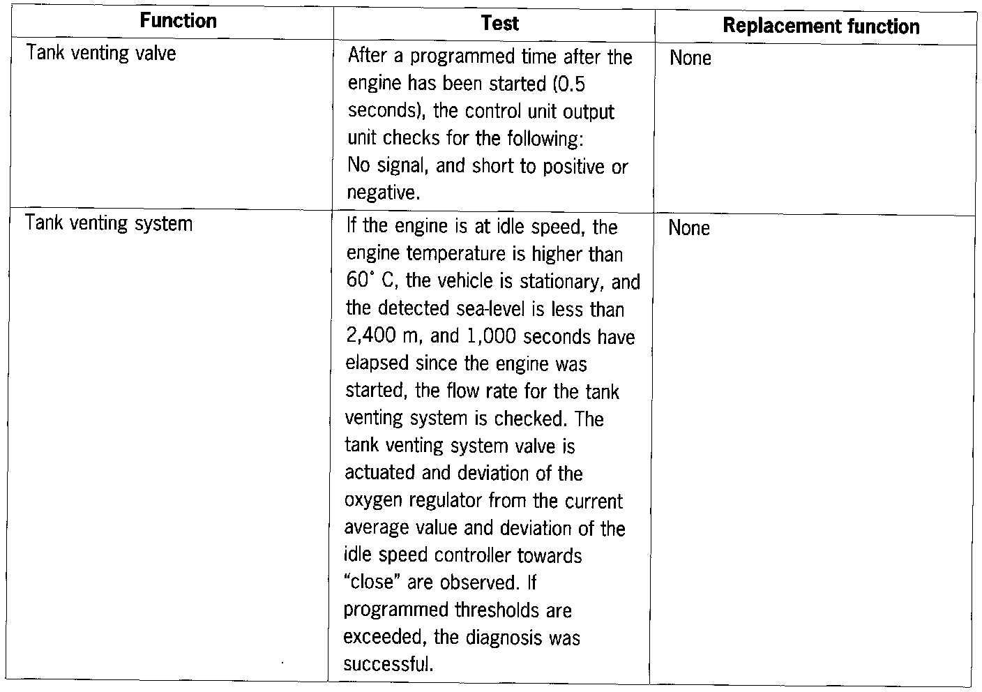 Adaptation values during tank venting (FTEA)
