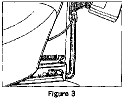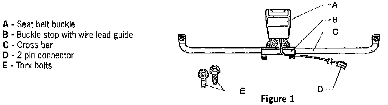 2.2 Reinstall the passenger seat. Push the ends of the crossbar into the seat rails. When properly installed, the wire holder on the belt buckle crossbar must face upward (Figure 3).