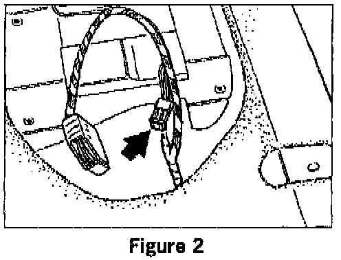2.1 Locate the two wire connector taped to the wiring harness (Figure 2). Connect this lead to the connector of the crossbar buckle. Secure this lead with adhesive tape.