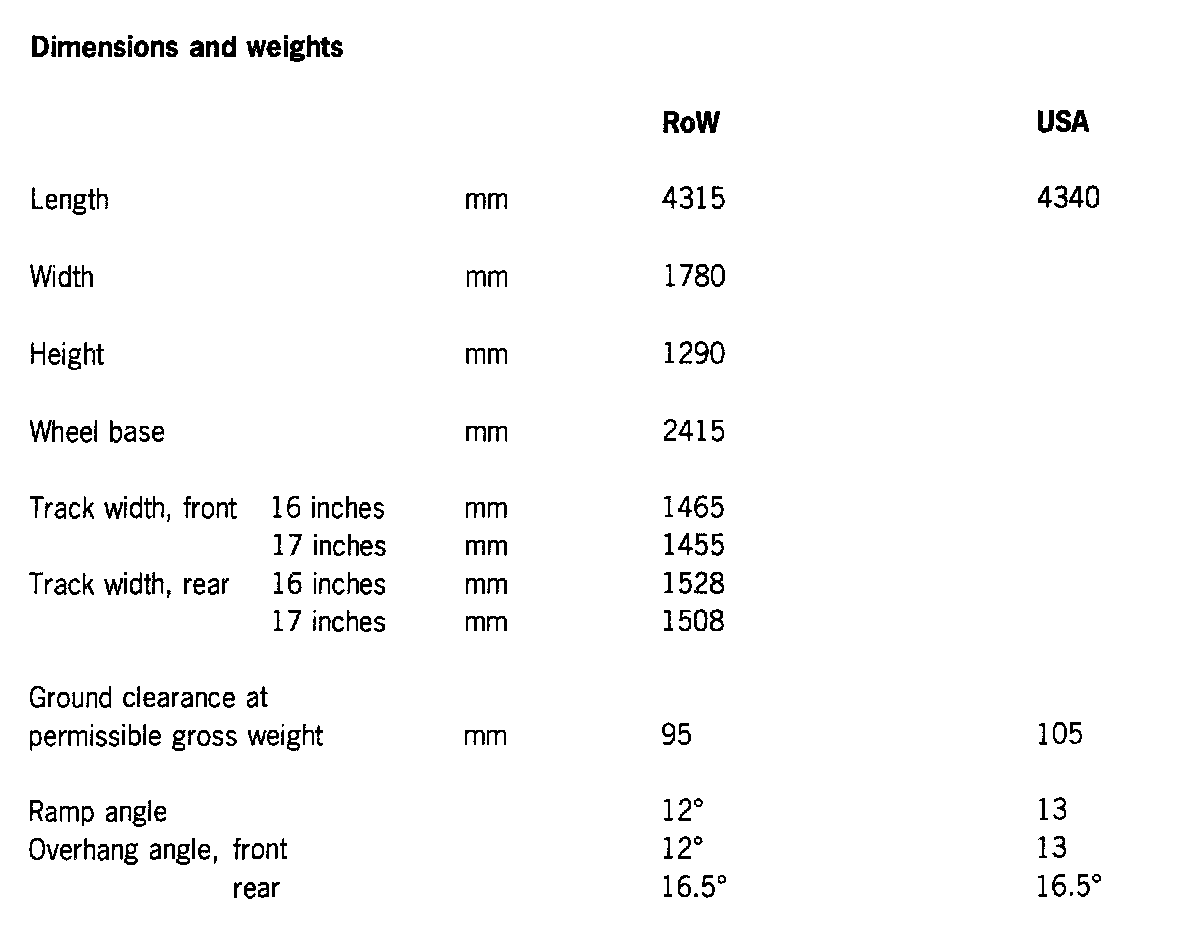 Dimensions and weights