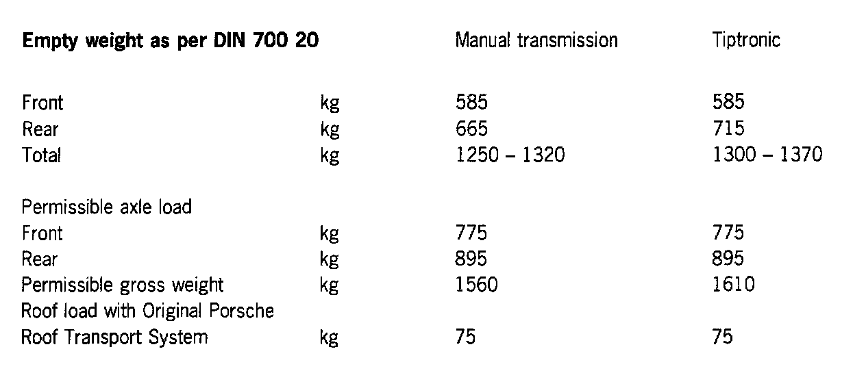 Empty weight as per DIN 700 20