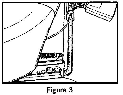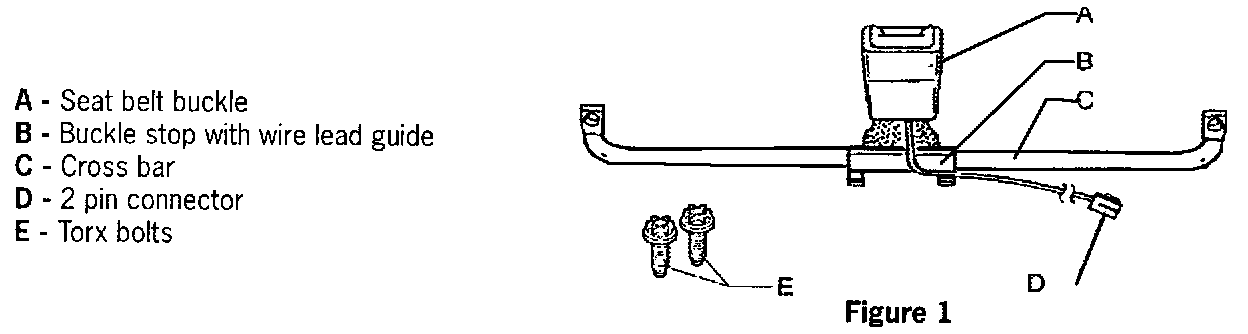 2.2 Reinstall the passenger seat. Push the ends of the crossbar into the seat rails. When properly installed, the wire holder on the belt buckle crossbar must face upward (Figure 3).