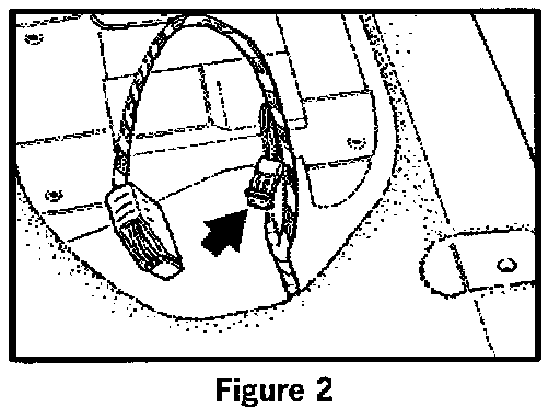 2.1 Locate the two wire connector taped to the wiring harness (Figure 2). Connect this lead to the connector of the crossbar buckle. Secure this lead with adhesive tape.