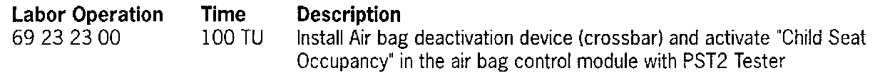 4.2 If the cross bar with seat belt buckle is no longer desired and is removed, the air bag control unit must be re-coded to "Child Seat Occupancy" "Not Active" status with the PST2 tester.