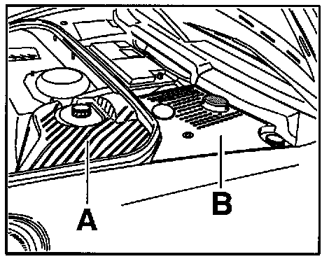 1. Switch off ignition. Remove cover -A + B- and battery cover.