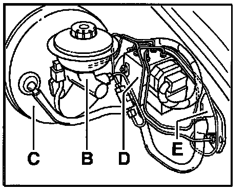 ^ The assembly of the brake master cylinder -B- with the brake booster -C- must not be disconnected for removal and installation if both parts should be continued to be used!
