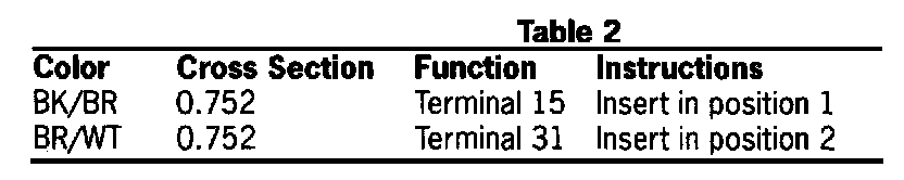 2.2 Crimp the terminals which were taped to that harness on the wire ends and insert them into the corresponding housing. See table 2.