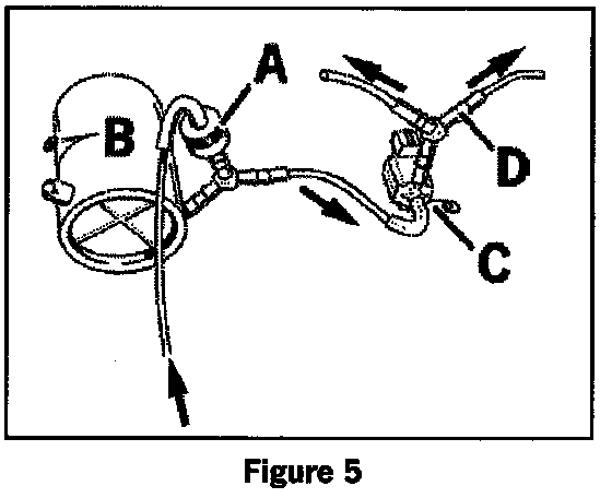 - Connection reversed on switchover valve (Figure 5, Item C).