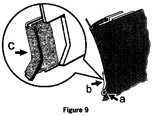 5. Cut a piece of felt tape to 25 x 30 mm and stick it around the notch of the clamping rail (figure 9, arrow c).