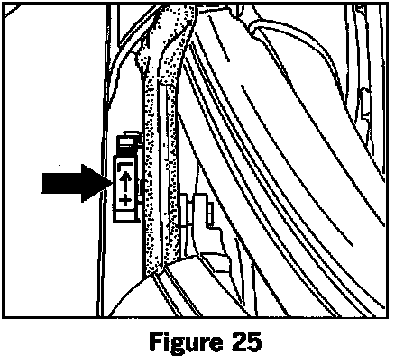 1. With the convertible-top compartment lid open, move top part of the stops in the water channel (arrow, figure 25) rearward to the "low position on the left right hand sides. Unclip cover trim from the guide arms of the convertible-top compartment lid.