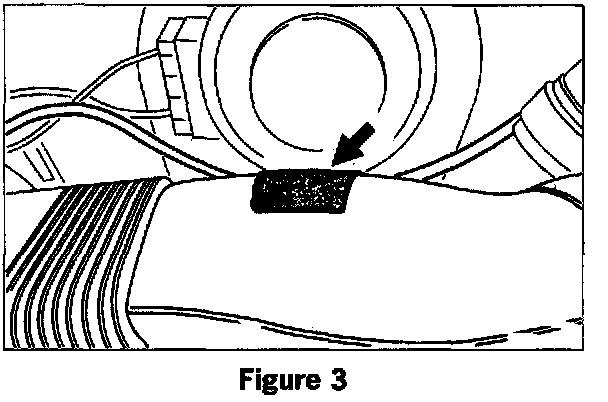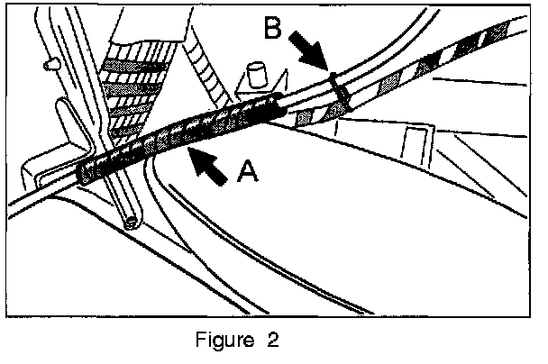 Wrap the loose electrical leads with foam or sponge rubber tape, then tie-wrap the wires back. See figure 2.