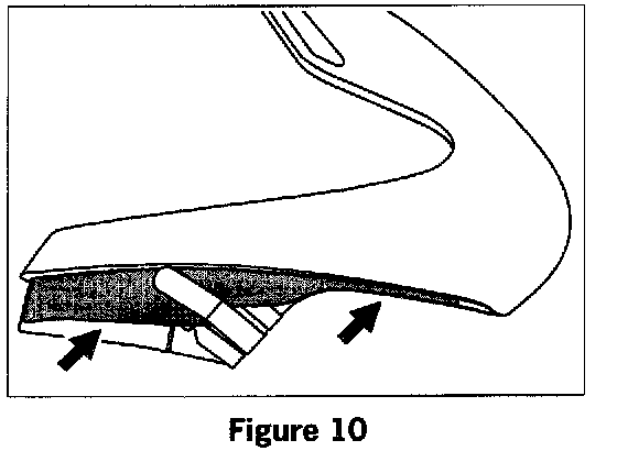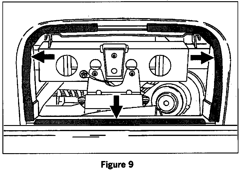 Check the Contact surface for the airbag panel (see arrow in figure 9). If the insulation strips are missing, loose, or have slipped out of position, apply new narrow felt tape strips. See figure 9. While tightening the fastening screws for the airbag unit, have the panel of the passenger's airbag pressed forward evenly by a second person. This will ensure that the panel is under even tension after tightening the bolts.