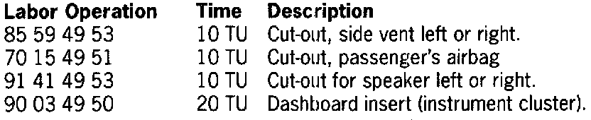 Refer to figure 1 for the listed numbers associated with the noises. In order to remedy noises in the dashboard, the following covers and components should be removed only if necessary.