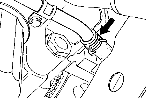 17. Relieve spring-band clamps and pull off coolant hoses on flow and return sides.