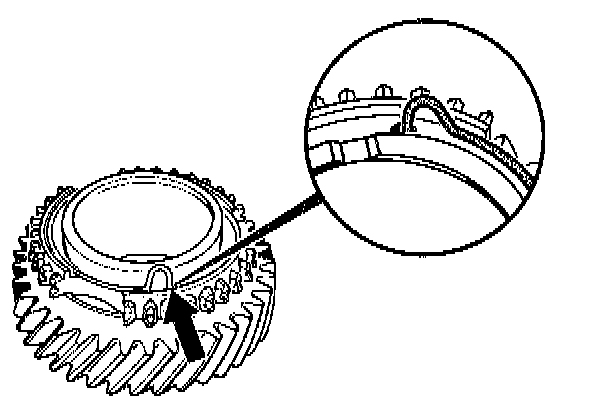 Note Before fitting the separating device, press the synchronizing ring for the 3rd gear (arrow) to the loose gear wheel for the 3rd gear.