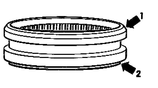 3. Install the selector sleeve so that the slant (arrow 1) faces the 4th gear and the offset side (arrow 2) faces the 3rd gear.