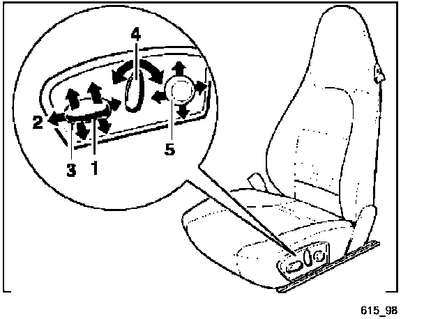 [1,2,3]- Fore-and-aft adjustment and height adjustment are carried out by actuating the switch in the positions shown in Figure 615_98.