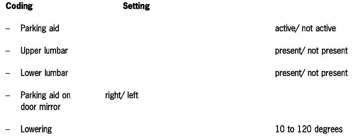 11. With the [down arrow] key, select Parking aid with rearview mirror and press the [>>] key to alter the coding.