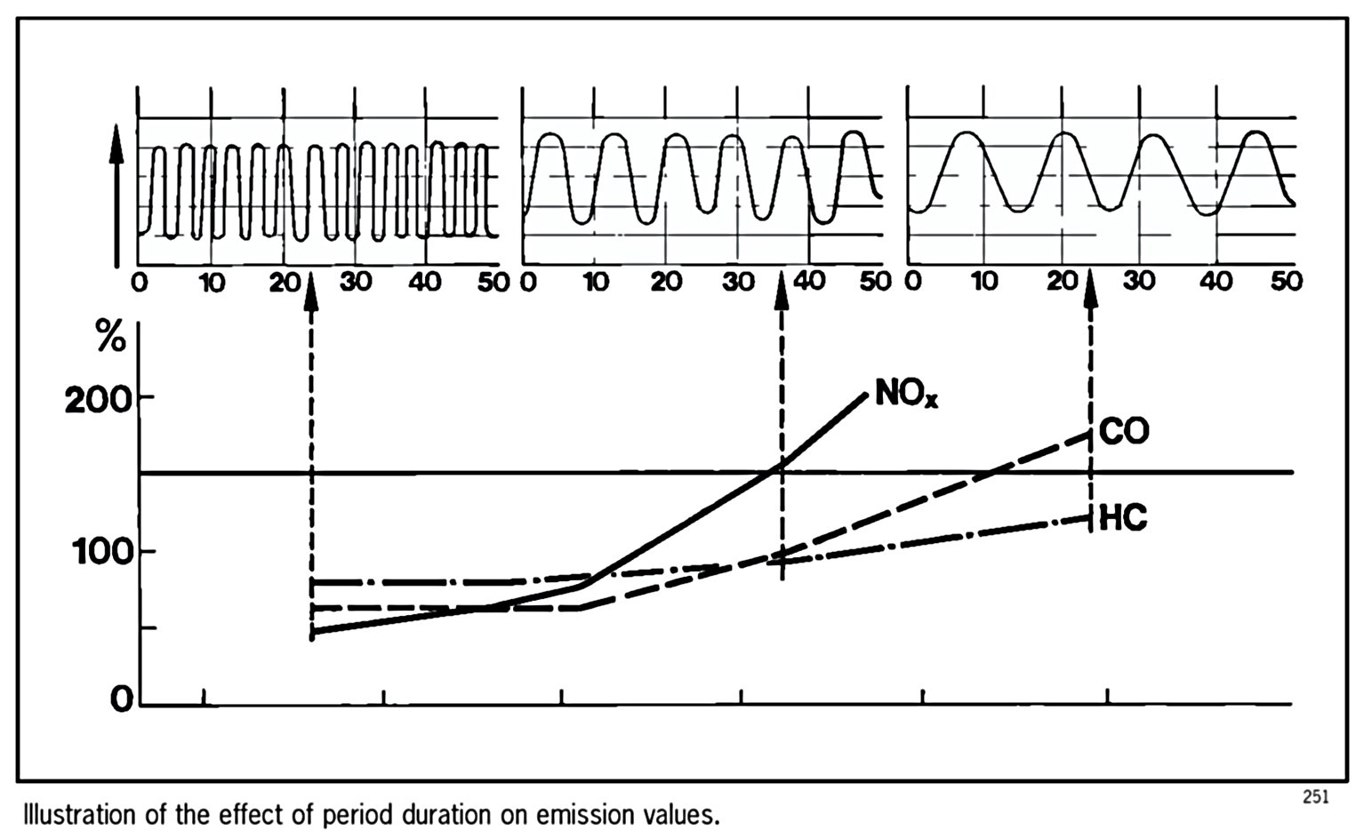 Contamination or aging of the oxygen sensor affects the sensor voltage or period duration of the sensor signal and therefore has a negative influence on emission values.