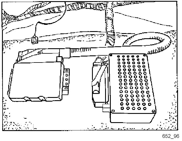 NOTE: The test adapter is connected between the pulled-off DME control module connector and the DME control module. It protects the contacts of the control module connector and helps the user to find the individual pins.