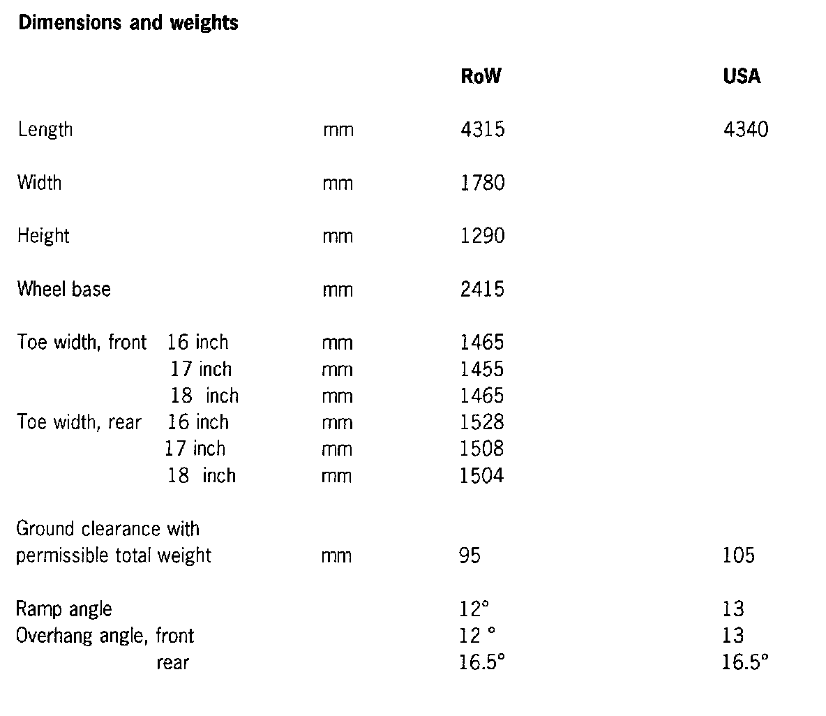 Dimensions and weights