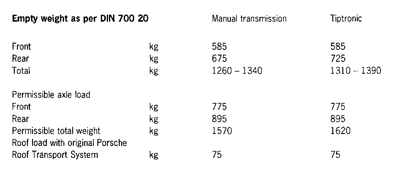 Empty weight as per DIN 700 20