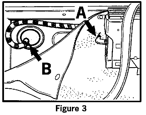 2.3.2 Remove grommet from the firewall, (Figure 3, Item B) and cut on the lower side.