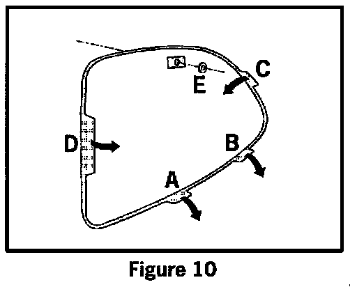 5.3 Gently bend the lower tabs (Figure 10, Items A and B) on the loudspeaker grille outwards. Gently bend the side tabs (Items C and D) inwards. The grille should be gently bulge outwards overall in order to increase the contact pressure when screwing it on.