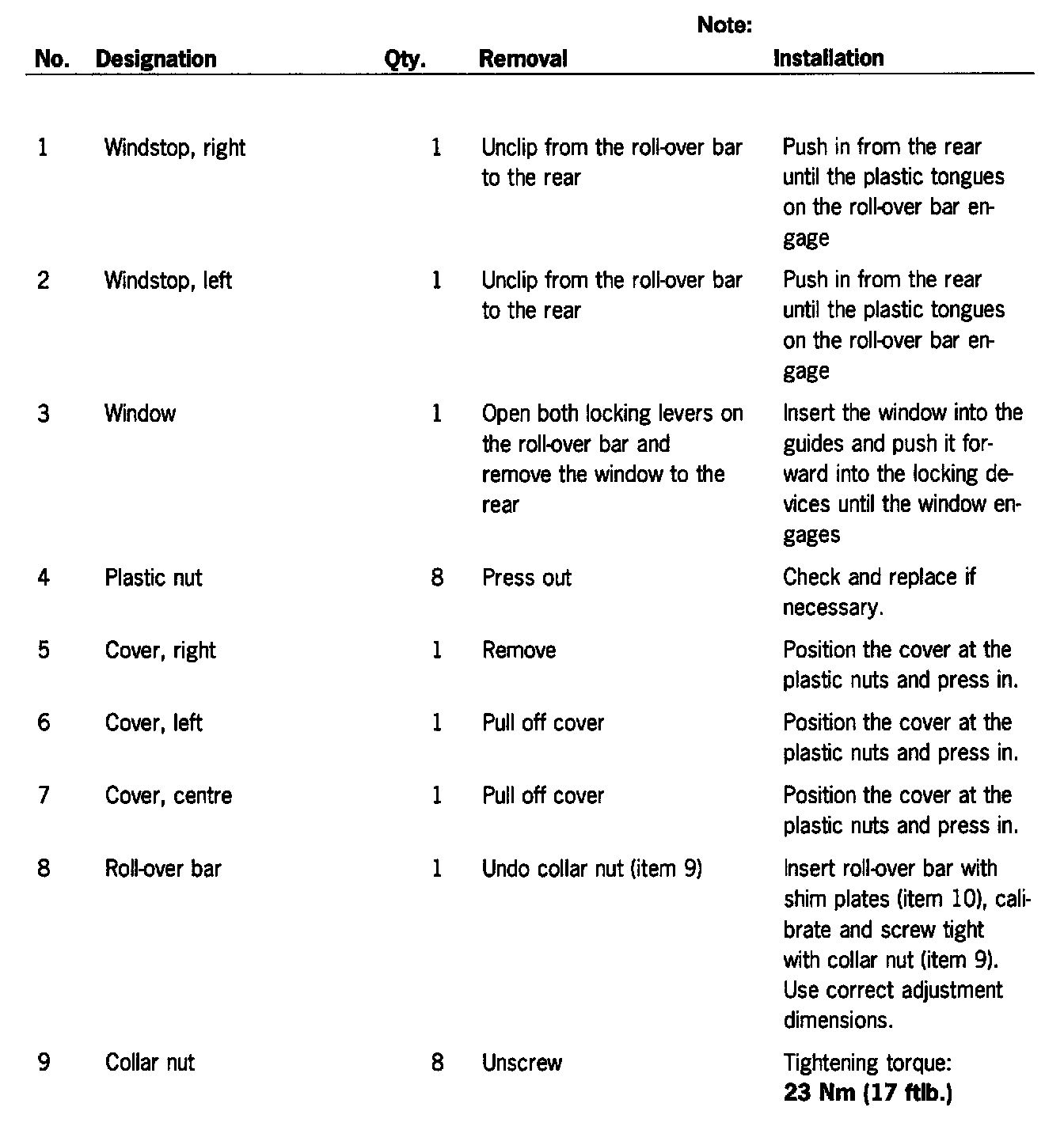 Removing and Installing Roll-Over Bar