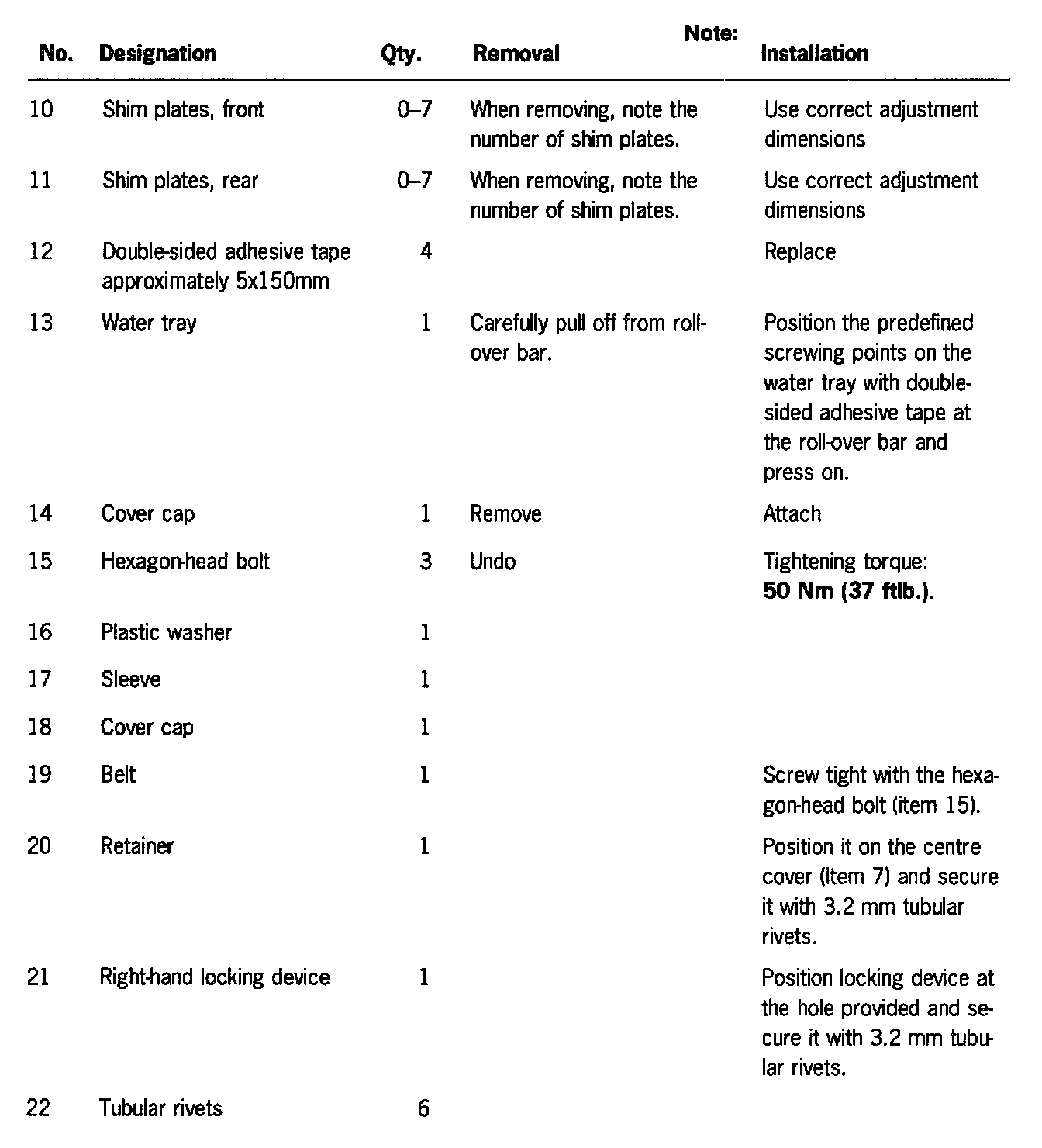 When installing the roll-over bar, comply with the special instructions and adjustment dimensions. See Adjustment of the Roll-Over Bar.