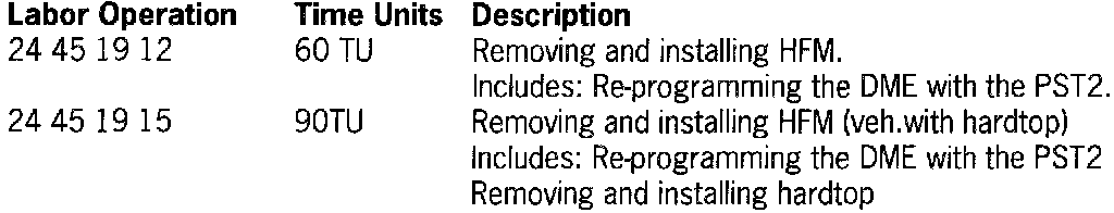 When replacing an old style HMF sensor on vehicles with a new style HMF sensor, the DME must be reprogrammed. Remember: do not install a new style HMF sensor until you receive the 9.0 software for the PST2.