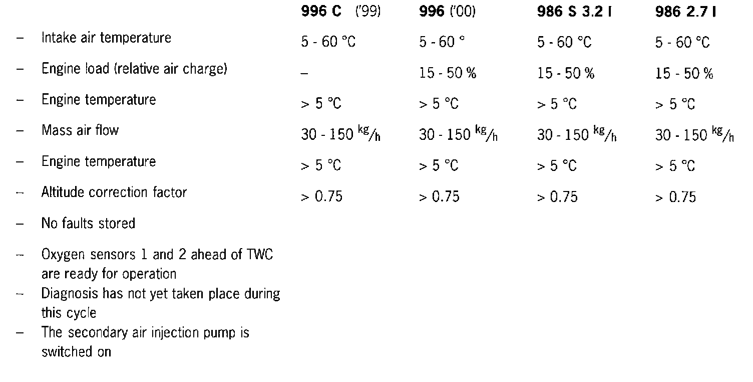 The secondary air injection system is deactivated under the following conditions: battery voltage < 8 V