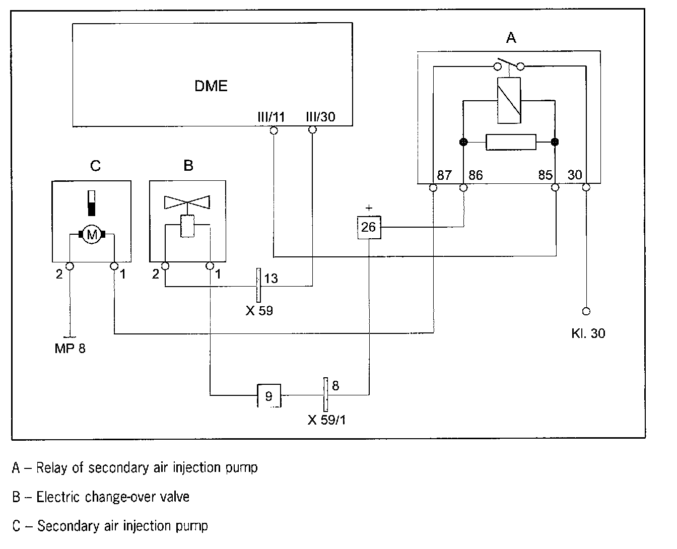 1. Check fuse (Maxi Fuse) of AIR pump (on relay carrier 2).