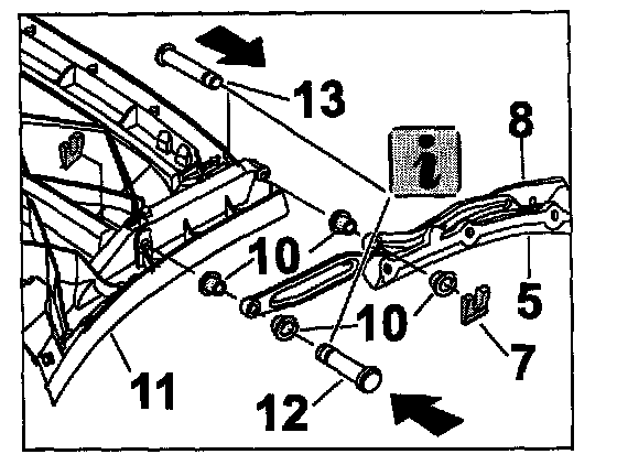 1. Insert bushing -10- 8x10x5.5 into the bore on the outer and inner side of roof frame 2 -5- and roof frame 3 -8-.