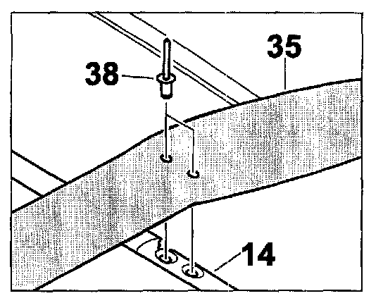 Position tension strap -41- on main bow -14- on the holes provided, rivet on the tension strap -41- with the pop rivets -43- (parts scope component of convertible-top covering)